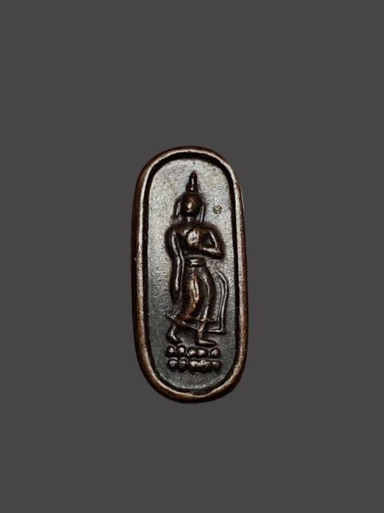 A8619.พระลีลาใบมะขาม 25 ศตวรรษ เนื้อทองเเดง เคาะเดียวเเดง