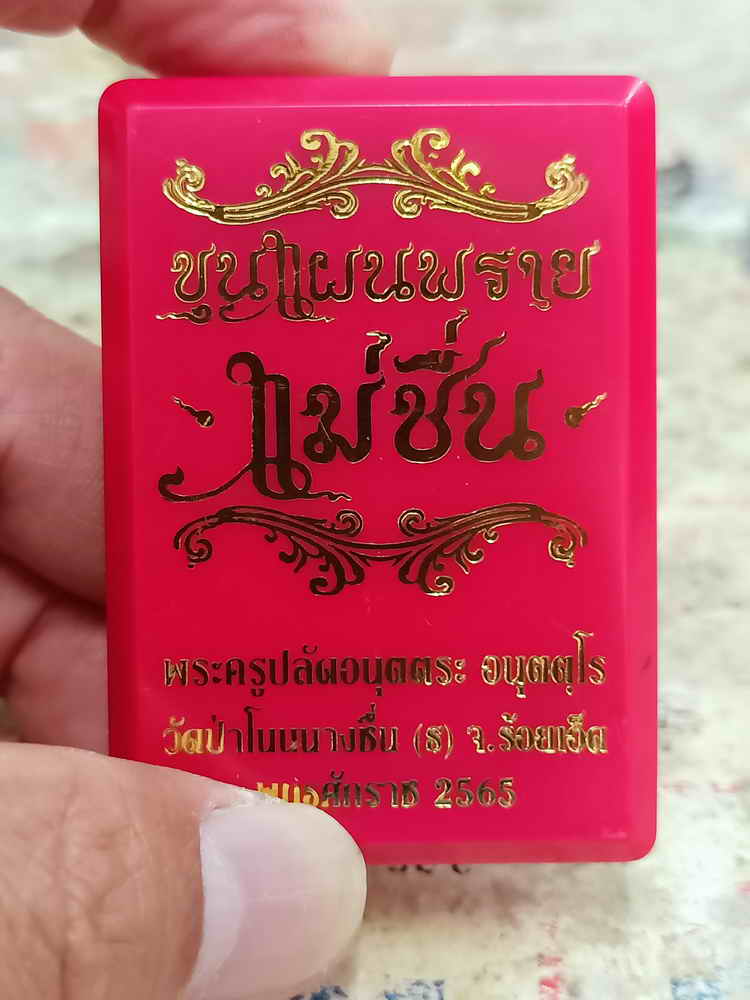 วัดใจ 100 พระผงขุนแผนพรายแม่ชื่น พระครูปลัดอนุตตระ วัดป่าโนนนางชื่น จ.ร้อยเอ็ด 2565 หมายเลข 14 กล่องเดิม
