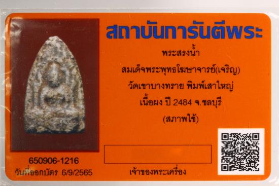 .พระสรงน้ำ สมเด็จพระพุทธโฆษาจารย์ (เจริญ) วัดเขาบางทราย พิมพ์เสาใหญ่ เนื้อผง ปี 2484 จ.ชลบุรี (สภาพใช้)