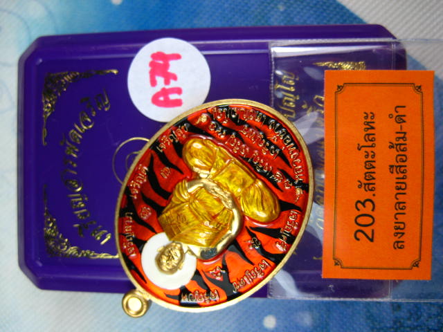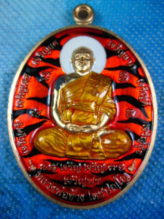 เหรียญสารพัดเจริญ เนื้อสัตตะโลหะ ลงยาลายเสือ ส้ม-ดำ ปี2566 หลวงพ่อช้าง วัดจุกเฌอ แปดริ้ว (---A74---)