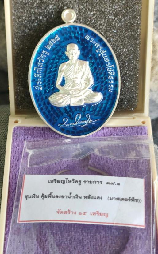 เหรียญ"ไหว้ครู ๖๘"หลวงปู่บุญมา สำนักสงฆ์เขาแก้วทอง เนื้อชุบเงิน คุ้ยพื้นลงยาน้ำเงินหลังลงยาแดง มาสเตอร์พีช ตอก"พิเศษ"สร้าง๑๕เหรียญ หมายเลข ๙๙๙๙ พร้อมกล่อง แท้ทันหลวงปู่ สร้างน้อยน่าเก็บสะสมคับ