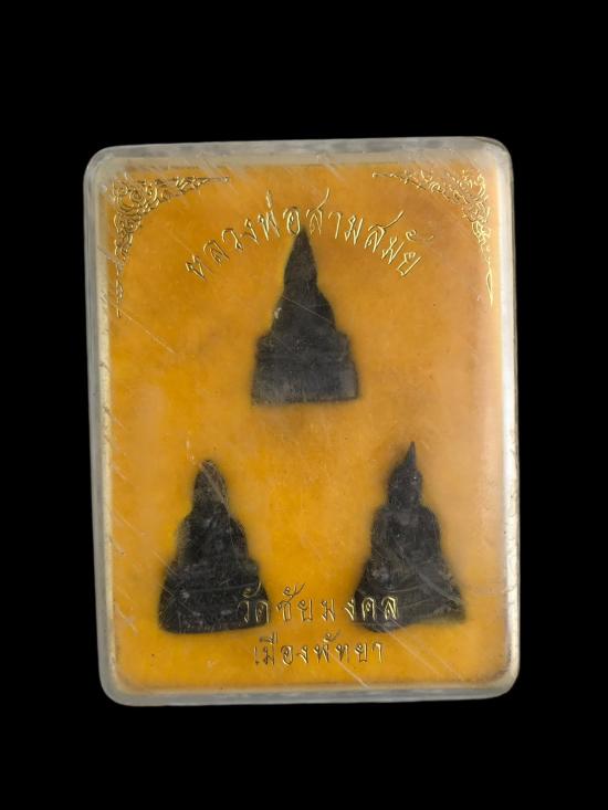 เคาะแรกแดงเลย หลวงพ่อสามสมัย วัดชัยมงคล เมืองพัทยา เนื้อนวะโลหะ จำนวน 3 องค์ กล่องเดิม |
