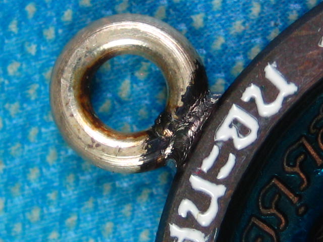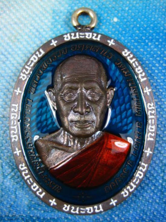 เหรียญชนะจน เนื้อนวะโลหะ ลงยาพื้นฟ้า ลงยาขอบ ลงยาจีวร ห่วงเชื่อมเงิน หลวงพ่อรวย วัดมาบตาพุด จ.ระยอง (---A82---)