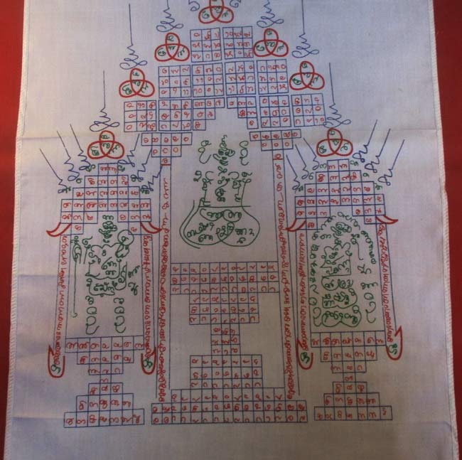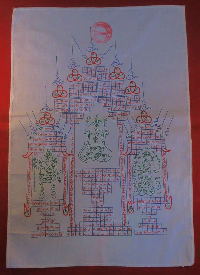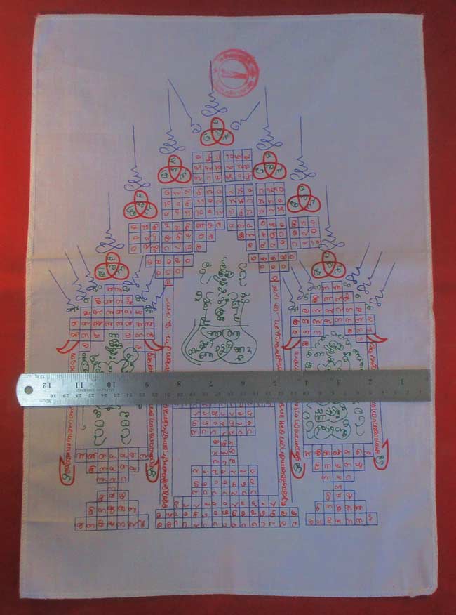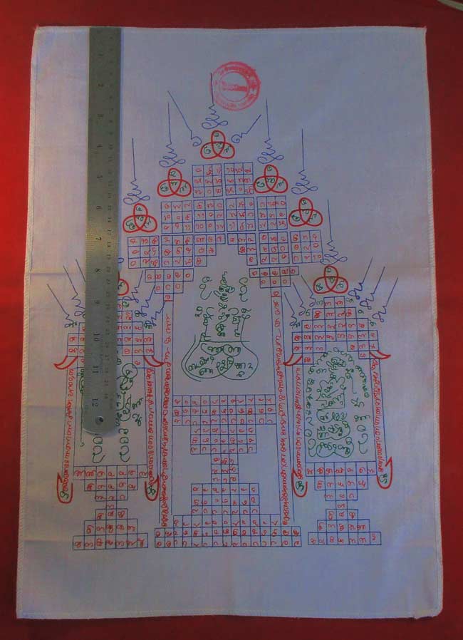 ผ้ายันต์ ไม่ทราบที่ มีตราวัด แต่ผมอ่านไม่ออก ครับ