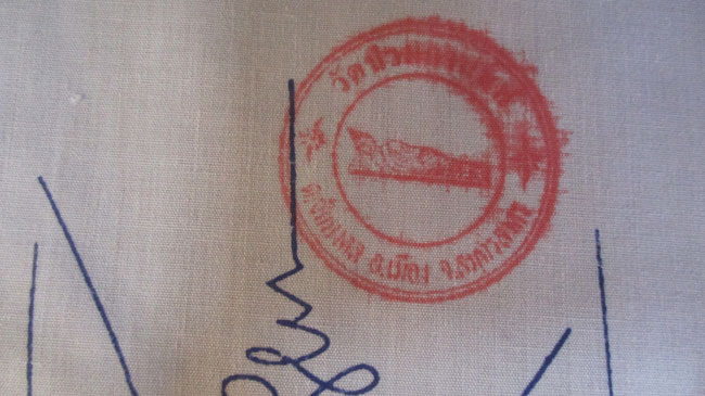 ผ้ายันต์ ไม่ทราบที่ มีตราวัด แต่ผมอ่านไม่ออก ครับ (พระบ้าน ครับ) |