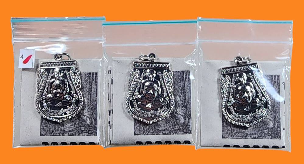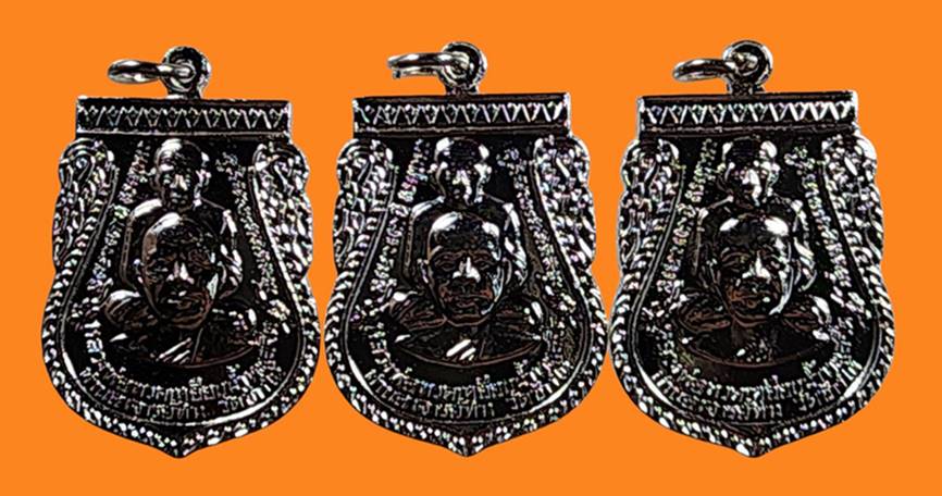 ( 3 องค์ ใบคาถาเดิม) เหรียญพุฒซ้อน หลวงปู่ทวด วัดช้างให้ เนื้อชุบนิเกิล ปี ุ66 สวยๆพร้อมซอง+ใบคาถาเดิมครับ 2