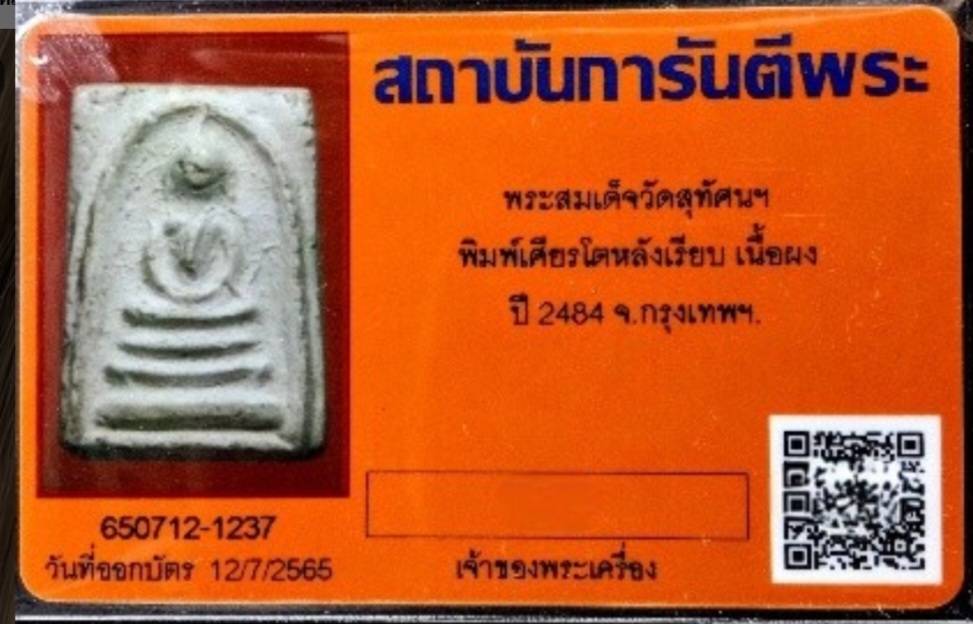 พระสมเด็จพระครูสุพจน์ วัดสุทัศน์ (พิมพ์เศียร์โต) ปี2484 สวยเดิม พร้อมบัตรรับรอง |