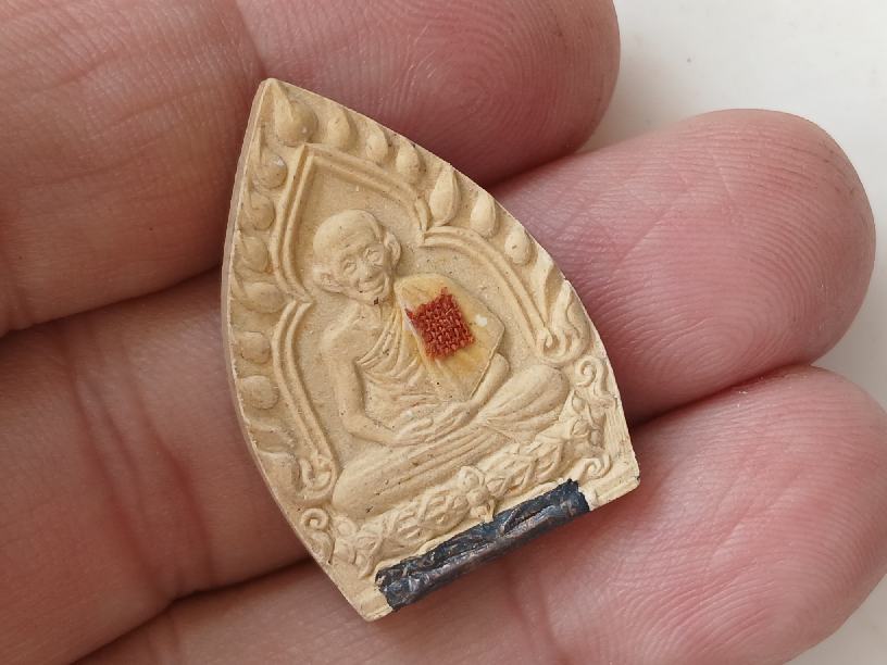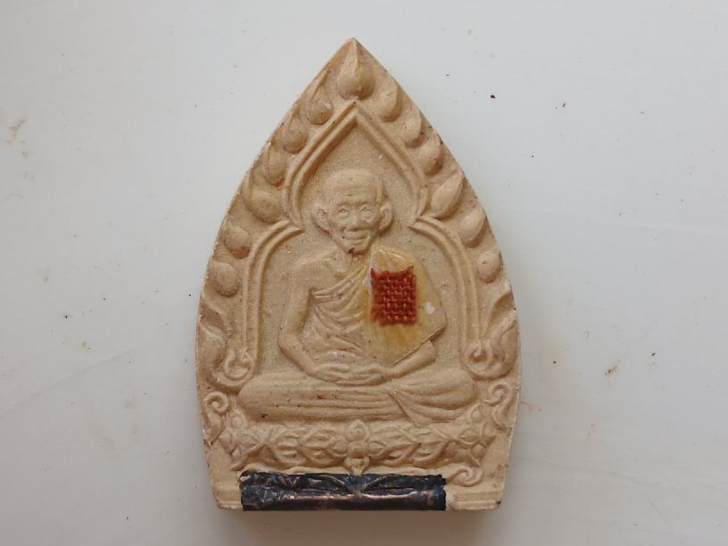 พระผงหลวงพ่อเกษม เขมโก พิมพ์ซุ้มเจ้าสัว รุ่นบารมี 81 ติดผ้าจีวร ฝังตะกรุดเงิน