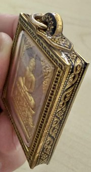 พระหลวงพ่อเสือ ด้านหลังเป็นหลวงพ่อแคล้ว วัดกำแพง ปิดทองสวย ๆ พร้อมกรอบลายทอง เหมาะแก่การแขวนโชว์ด้วย ครับ |