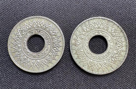 เหรียญสตางค์รู 10 สต เนื้อเงิน พศ 2484 รวม 2 เหรียญ