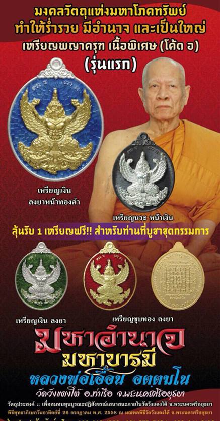 | เหรียญพญาครุฑ"มหาอำนาจมหาบารมี" หลวงพ่อเอื้อน วัดวังแดงใต้ ชุดกรรมการ9เหรียญ ลุ้นเนื้อพิเศษ พิธีใหญ่16เกจิดังปลุกเสก ปี58 |
