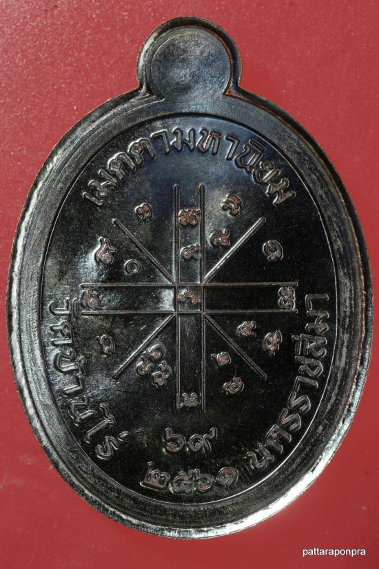 เหรียญหลวงพ่อทอง รุ่นเจ้าสัว ปี 2561 เนื้อทองแดงรมดำไม่ตัดปีก กรรมการ หมายเลข 8 เลขสวยๆ