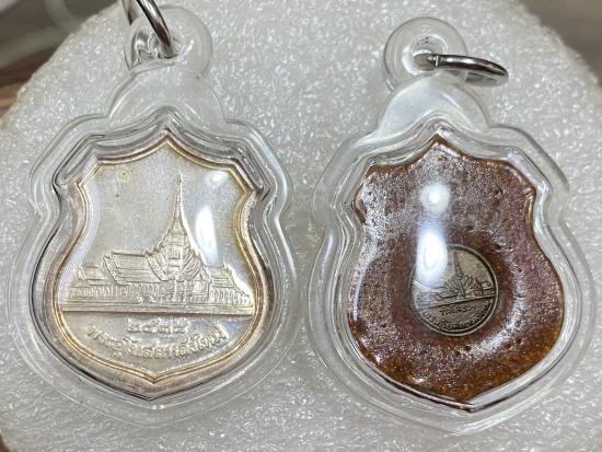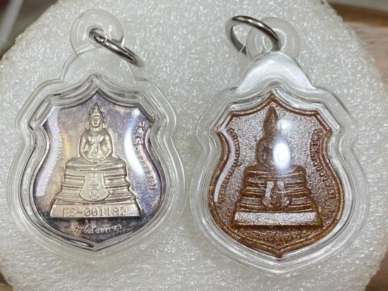 เหรียญหลวงพ่อพุทธโสธร สธ.เหรียญอาร์มเนื้อเงินและเนื้อกระเบื้องหลังคาโบสถ์ ปี2538 พิธีใหญ่ พร้อมกล่อง