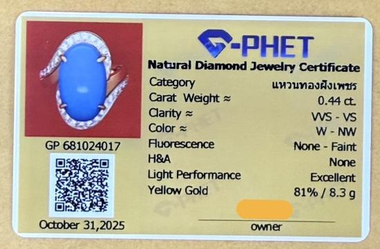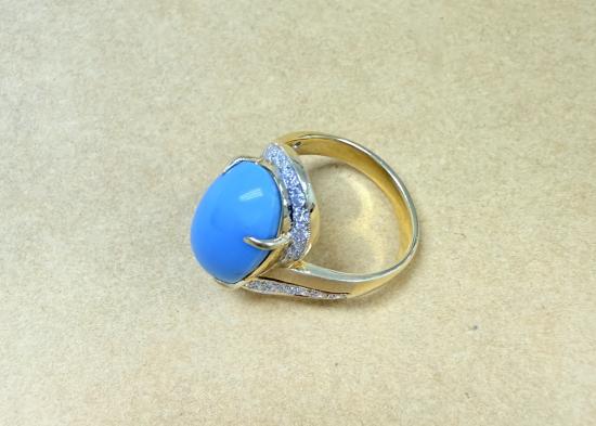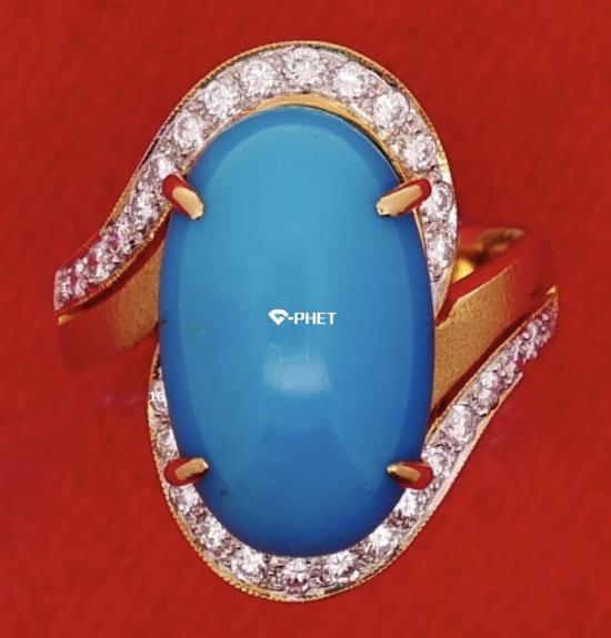 แหวนเทอร์ควอยส์ล้อมเพชร ใส่ขึ้นมือมาก ใส่แล้วขับผิว ทอง 81% นน.รวม 8.3 กรัม [ เบอร์ 52 ]**พร้อมใบเซอร์เพชร**