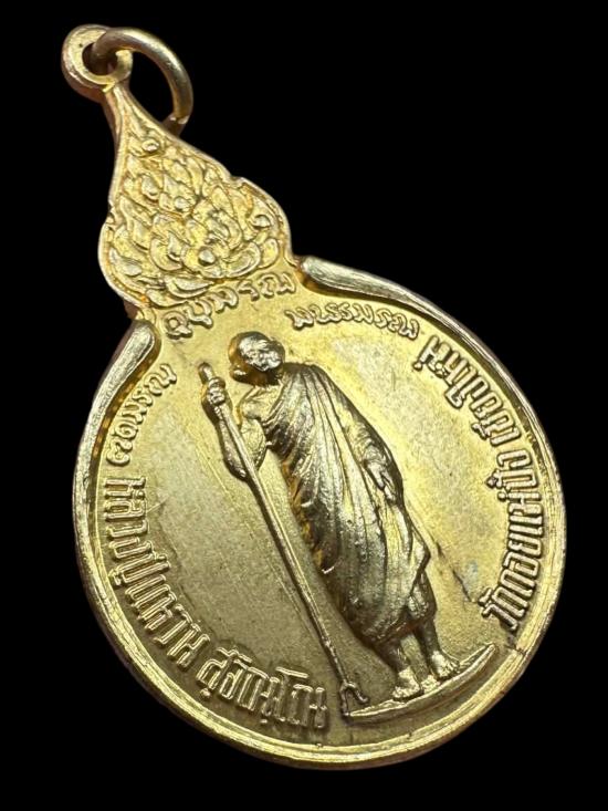-วัดใจเคาะเดียวแดง-เหรียญยืนหลังพระปรมาภิไธยย่อ ภ.ป.ร. หลวงปู่แหวน สุจิณฺโณ วัดดอยแม่ปั๋ง จ.เชียงใหม่ ปี 2519 กะไหล่ทอง |