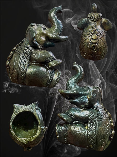 ตอนแรกหลวงพ่อหนูจะให้ใส่ตลับธรรมดา ลูกศิษย์หาตลับพลาสติกมา ใส่ไปแล้วแตกหมด ใส่ตลับไม้ก็มีลอยร้าวน้ำสีผึ้งไหล หลวงพ่อหนูจึง ตั้งจิตถามเทวดาว่า จะใส่ตลับอะไร ที่คู่ควรคำตอบที่ได้ตอบว่า ของนี้แรงขี้ผึ้งที่ไม่มีในโลก ให้ทำช้างตกมันมาบรรจุจึงใช้ได้ หลวงพ่อหนูจึงทำตลับเป็นรูปช้างพลายกลัดมันกำลังยกงวงชูงา นั่งกระดกก้นร้องเรียกช้างพัง (ช้างตัวเมีย) ปิดทองรับขวัญไว้