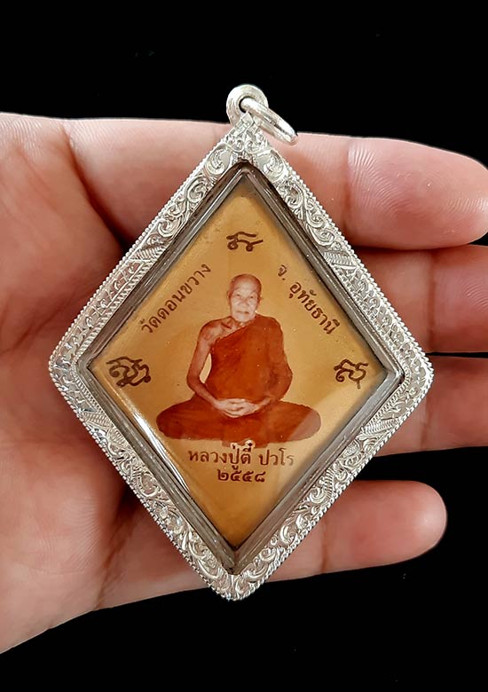 ล๊อกเก็ตจัมโบ้ ฉลากทอง สี่เหลี่ยมข้าวหลามตัด หลวงพ่อตี๋ วัดดอนขวาง อุทัยธานี ปี 2558 หมายเลข 43 เลี่ยมเงินแท้ 92.5% เงินหนา แกะลายมือ ยกซุ้ม ตีเกลียวคู่ด้านข้าง กันน้ำ สวยงามมากๆ |