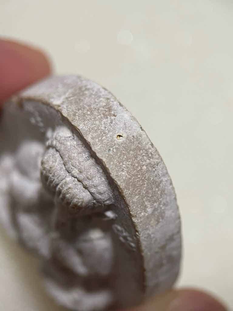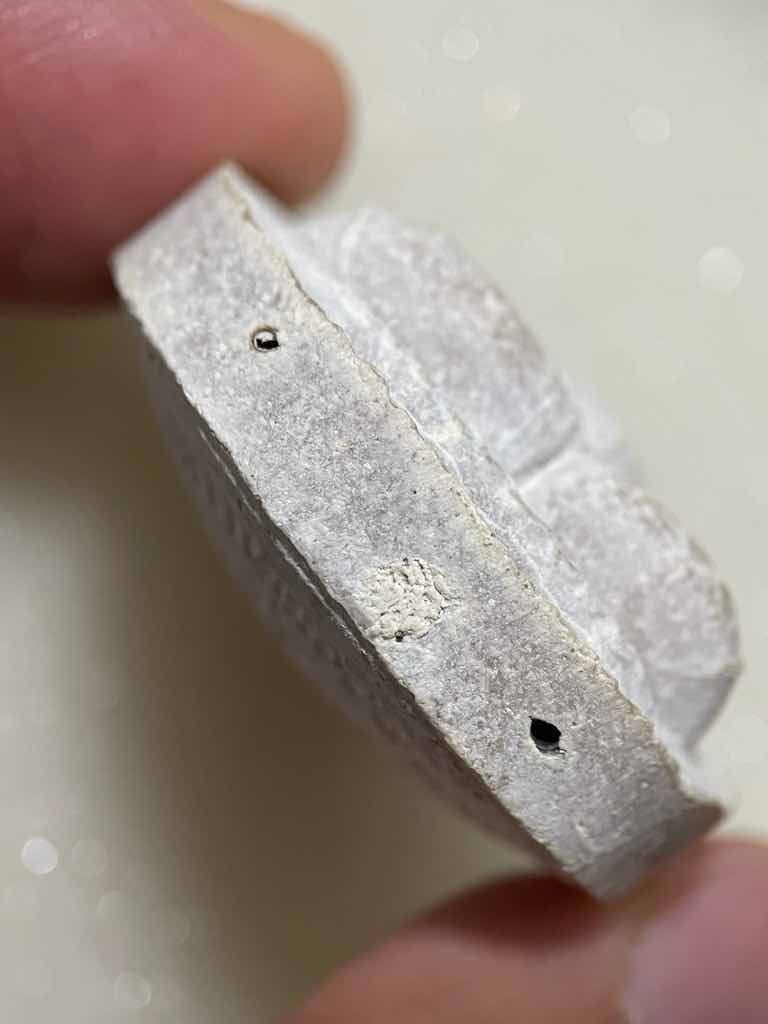 พระปิดตาพิมพ์ใหญ่จัมโบ้ (รุ่นพิเศษ) ปี ๒๕๓๑ ฝังตะกรุด 3 ดอก หลวงพ่อแพ วัดพิกุลทอง จ.สิงห์บุรี เนื้อผงพุทธคุณผสมผงเกสร (ผงขาว) ฝังตระกรุด ด้านหลังปั๊มยันต์ประจำตัวของ หลวงพ่อแพ ด้านล่าง ยันต์ นะโมพุธายะ และ ชื่อหลวงพ่อ คมชัด มียันต์หมึกปั๊ม |