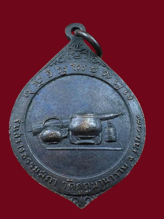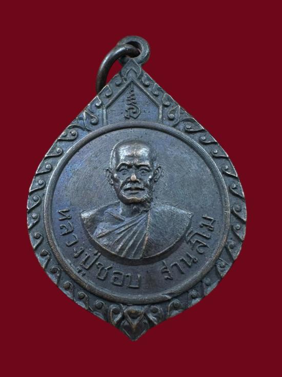 เหรียญหลวงปู่ชอบ ฐานสโม วัดภูตูมวนาราม รุ่นสร้างธรรมสภา เนื้อทองแดงรมดำ ปี 2517 จ,เลย