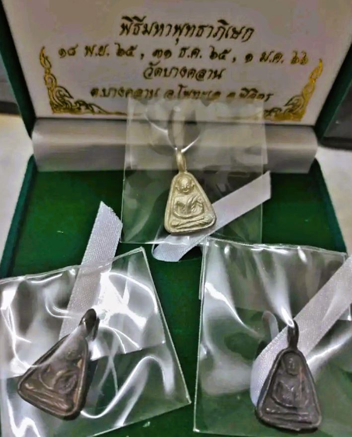 คาะเดียว) รูปหล่อหลวงพ่อเงิน วัดบางคลาน จ.พิจิตร (รุ่นย้อนยุคประวัติศาสตร์ เลขที่ 154 พิมพ์จอบเล็ก 1 ชุด รับพระ 3 องค์ เงิน , นวะ , ทองผสม