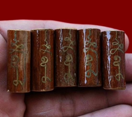 ชุด 5 ดอก...ตะกรุดสักทองฯ ปี 2558 หลวงปู่ชั้น วัดดอนสนวน จ.ชัยนาท พร้อมซองใบฝอยเดิมจากวัด สภาพพระตามรูปที่ลงทุกประการ (ขนาดยาวประมาณ 3.2 ซม.)