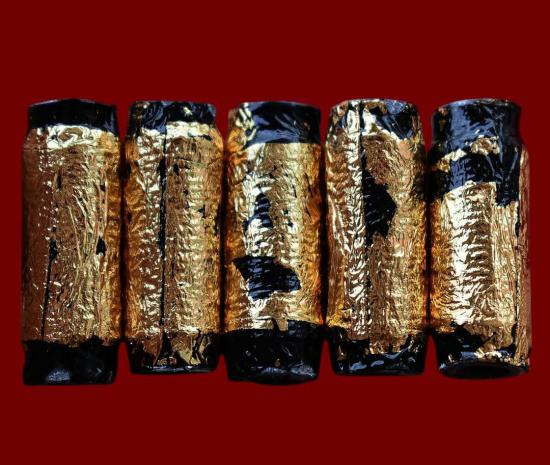 ชุด 5 ดอก...ตะกรุดพญาบุญลือมหาเสน่ห์ (ลงรักปิดทอง) ปี 2555 หลวงพ่อไพโรจน์ วัดโคกพระ จ.สิงห์บุรี พร้อมซองรูปใบฝอยเดิมจากวัด
