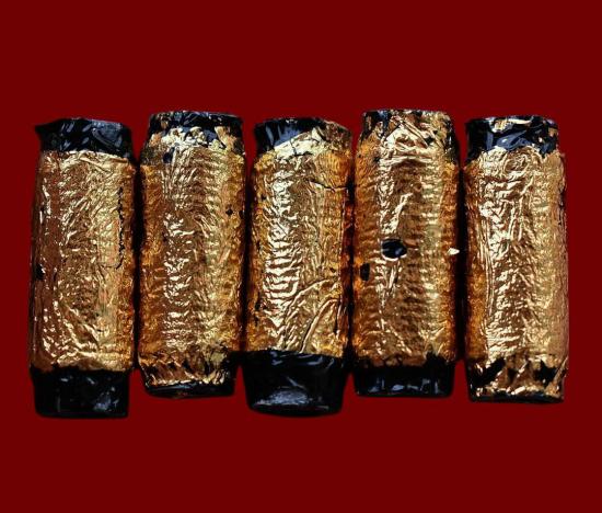 ชุด 5 ดอก...ตะกรุดพญาบุญลือมหาเสน่ห์ (ลงรักปิดทอง) ปี 2555 หลวงพ่อไพโรจน์ วัดโคกพระ จ.สิงห์บุรี พร้อมซองรูปใบฝอยเดิมจากวัด สภาพพระตามรูปที่ลงทุกประการ (ขนาดยาว 1 นิ้ว)