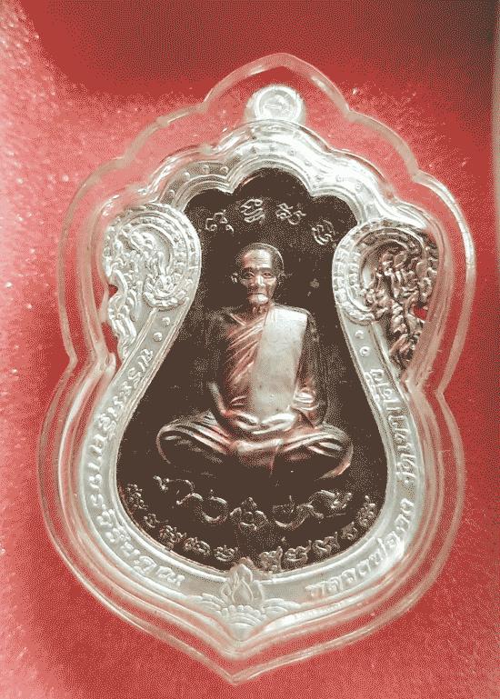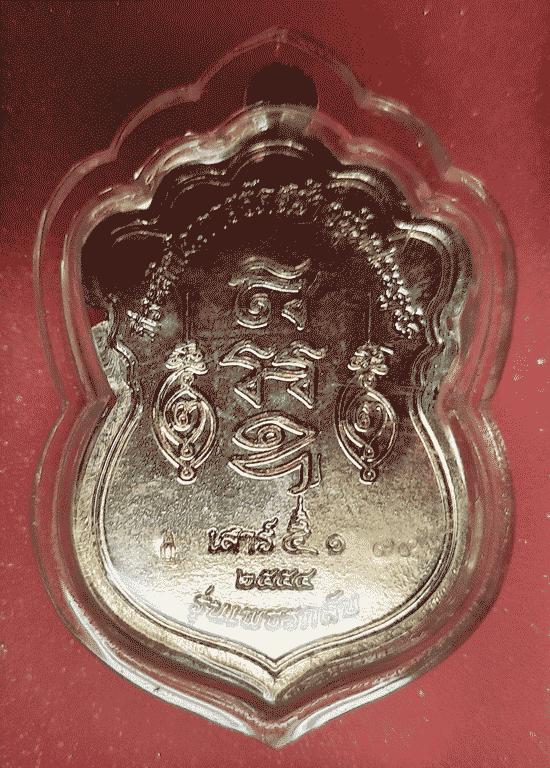 หลวงพ่อคง วัดเขากลิ้ง จ.เพชรบุรี รุ่นเพชรกลับ เนื้อนวะปะฉลุหน้ากากเงิน หมายเลข 99 พร้อมเลี่ยมพลาสติก