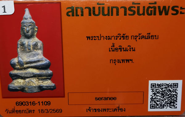 พระปางมารวิชัย กรุวัดเลียบ เนื้อชินเงิน จ.กรุงเทพฯ + บัตรG-pra สภาพเดิมค่ะ |