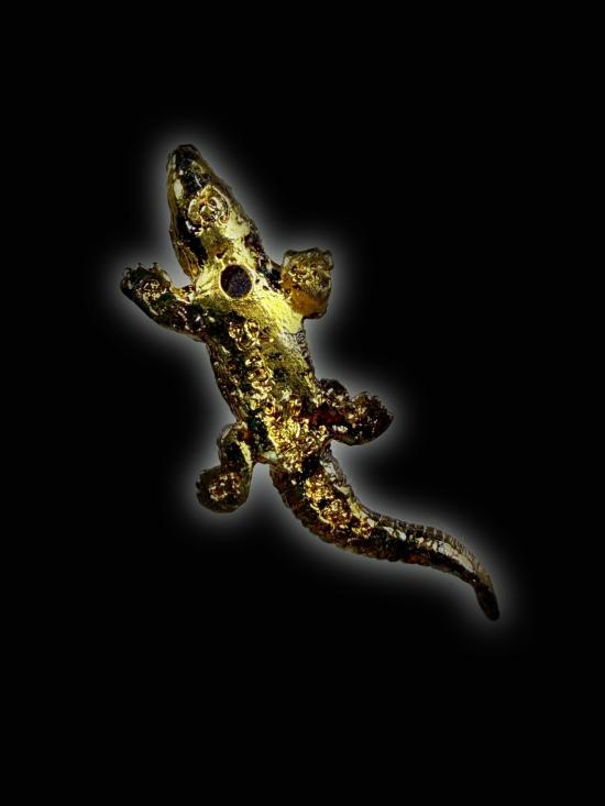 จระเข้อาคม อุดไม้ทองหลางทอง เนื้อโลหะผสม2กษัตริย์ จัดสร้างเนื่องในวาระฉลองอายุ ๑๐๙ ปี องค์นี้สภาพสวย พร้อมตลับเดิมครับ
