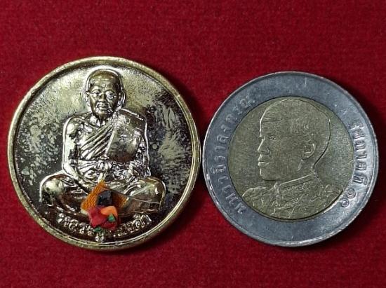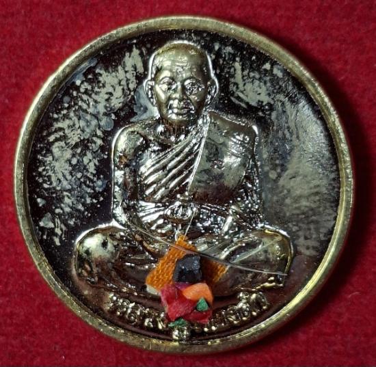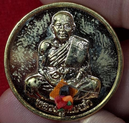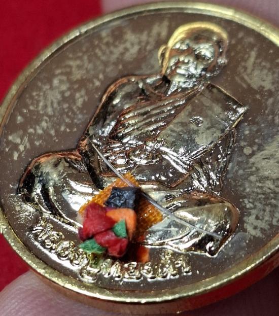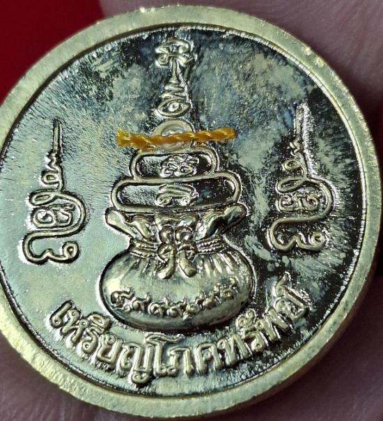 เหรียญโภคทรัพย์ หลวงพ่อทองดำ วัดท่าทอง จ.อุตรดิตถ์ เป็นเหรียญกะไหล่ทองและตอกโค๊ตที่ด้านหน้าเหรียญ สำหรับเหรียญนี้พิเศษตรงที่ติดแร่เหล็กไหล+จีวร+ไหม+เส้นเกศา แบบนี้หายากมากๆเลยนะครับ |