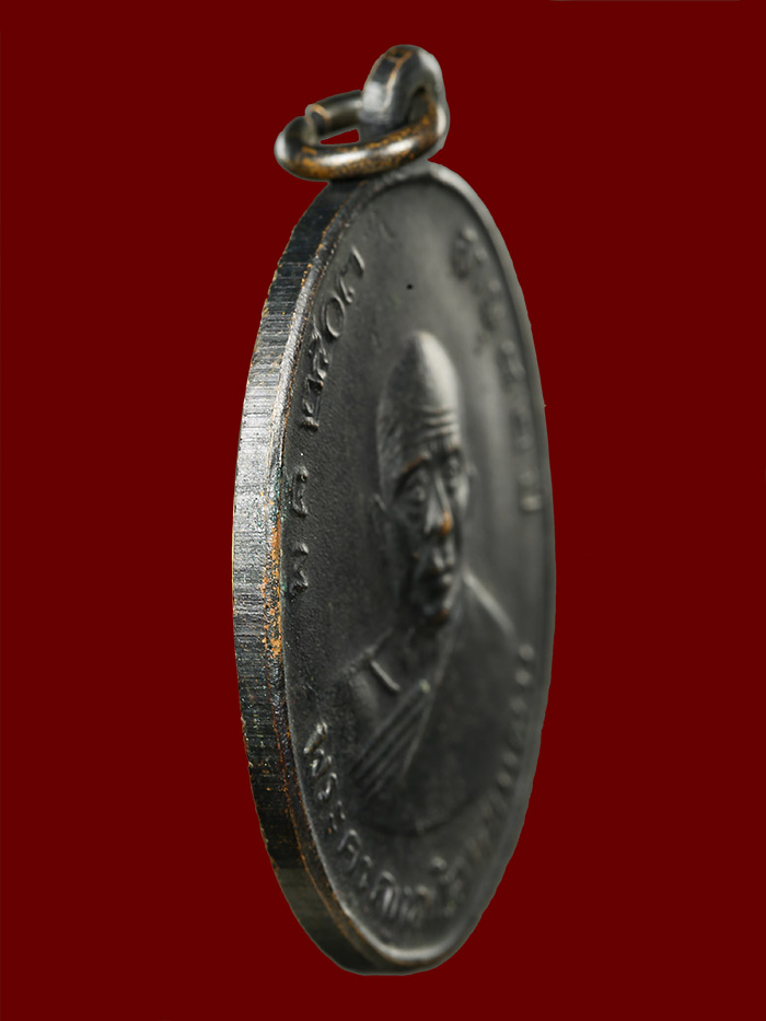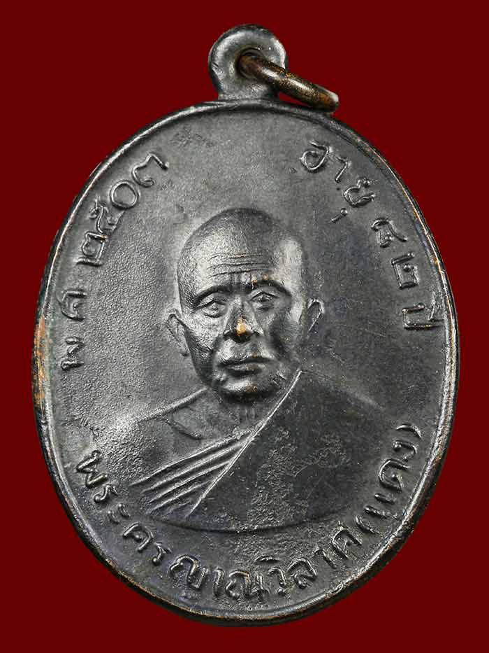 วัดใจ เหรียญหลวงพ่อแดง วัดเขาบันไดอิฐ พิมพ์สระแอจุด(พิมพ์ ๗ เอียง) เนื้อทองแดง ห่วงเดิม ปี2517
