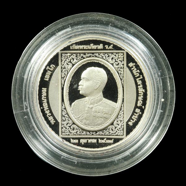 เหรียญเทิดพระเกียรติ รัชกาลที่ 5 รุ่น ปาฏิหาริย์ 23 ตุลาคมมหามงคล เหรียญเนื้อเงินขัดเงา 2.6 ซม. ปลุกเสก โดย หลวงพ่อเกษม เขมโก ผลิตโดยโรงกษาปณ์ เพิร์ธ ประเทศออสเตรเลีย