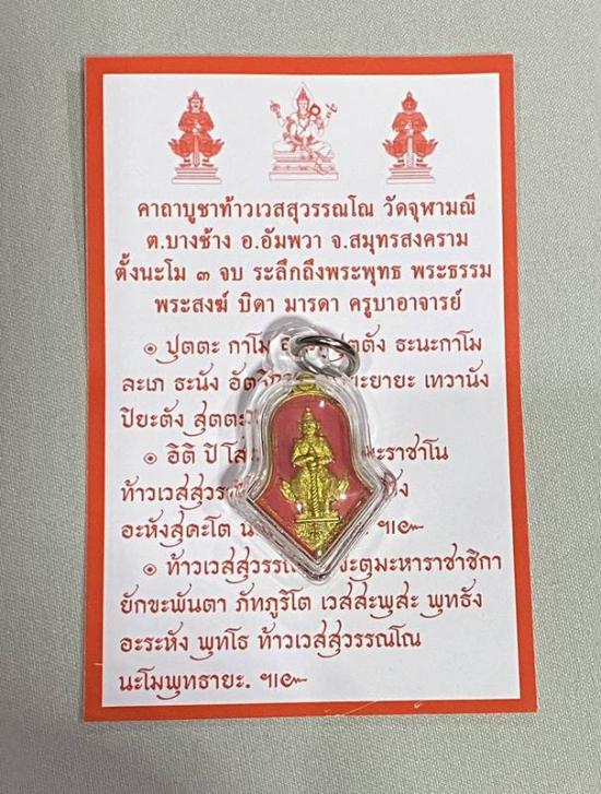 +_+_ เหรียญจำปีเล็ก ท้าวเวสสุวรรณ หลวงพ่ออิฏฐ์ วัดจุฬามณี ปี 2565 เนื้อกะไหล่ทองลงยาชมพู เลี่ยมกรอบพร้อมใช้ จ.สมุทรสงคราม_+_+