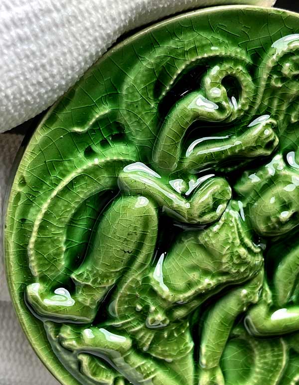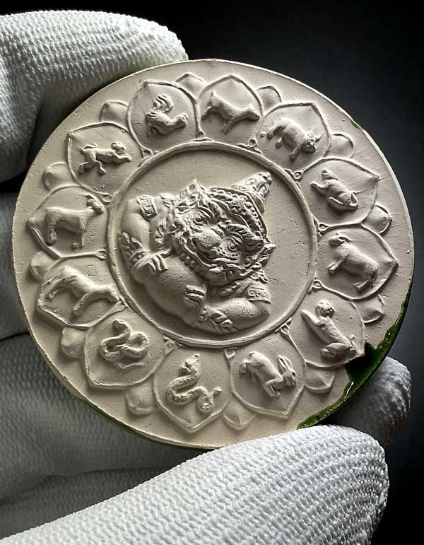 จตุคามรามเทพ รุ่น เก้าหน้ามหาโชค ( วัดอ้ายเขียว ) ปีพ.ศ. ๒๕๕๐ ขนาด 5.3 ซ.ม. เนื้อกระเบื้องเคลือบเขียว โค้ด รวย* สภาพสวยพร้อมกล่องเดิม