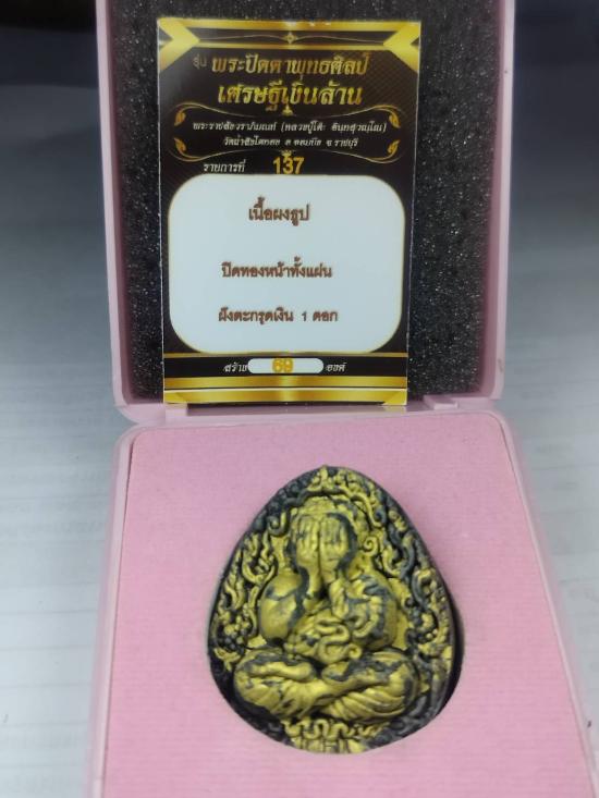 พระปิดตาพุทธศิลป์ รุ่น เศรษฐีพันล้าน เนื้อ ผงธูป ปิดทองหน้าทั้งแผ่น ฝังตะกรุดเงินแท้ 1 ดอก สร้าง 69 องค์ หมายเลข 20 หลวงปู่โต๊ะ วัดถ้ำสิงโตทอง ราชบุรี มวลสารและพิธีดีมาก มีกล่องเดิมจากวัด