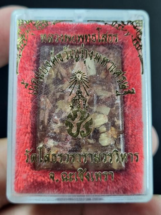 พระหลวงพ่อพุทธโสธร รุ่น เนื้อแบงค์ขวัญถุงมหาเศรษฐี หายาก พิเศษสุดๆ สำหรับพระรุ่นนี้ ถือเป็นรุ่นประวัติศาสตร์ ของการจัดสร้างพระเครื่อง ของเมืองไทย เป็นแบบแรก และแบบเดียว โดยนำธนบัตรแบงค์จริงๆ ชนิด 1,000 ,500,100,20 บาท มาเป็นมวลสาร ในการจัดสร้างพระรุ่นนี้ จัดสร้างราวๆ 2540 บูชาไว้เป็นศิริมงคล เป็นเคล็ดว่าเหมือนมีเงินติดตัวตลอดเวลา สาธุๆ