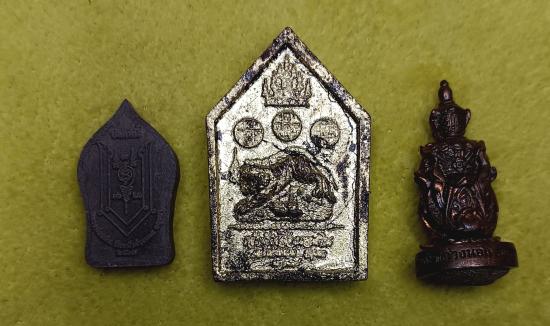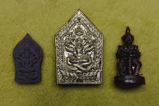 พระผงเจ้าสัวเสือนอนกิน เนื้อผงเศรษฐีทั้ง 5 + พระผงหลวงพ่อปลดหนี้ เนื้อผงยาจินดามณี + รูปหล่อท้าวเวสสุวรรณ รุ่นซื้อที่ดิน หลวงพ่อแม้น วัดหน้าต่างนอก (เคาะเดียวครับ)