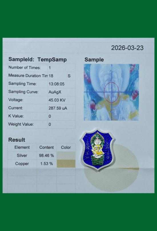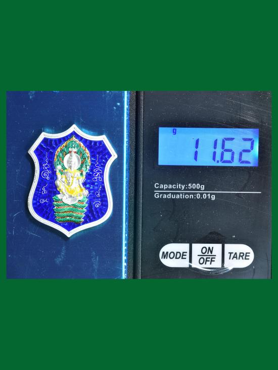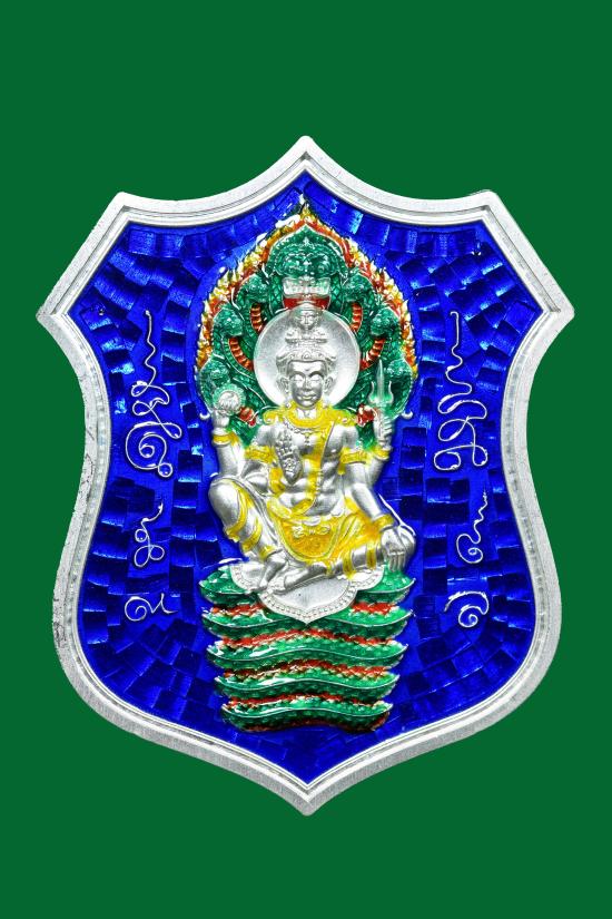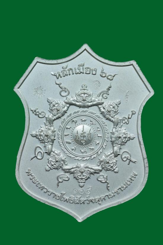 เหรียญโลห์รุ่นแรก องค์พ่อจตุคามรามเทพ หลักเมืองนครศรีธรรมราช รุ่น หลักเมือง 68 เนื้อเงินลงยา ตอกโค้ด องค์นี้หมายเลข 108 น้ำหนัก11.62 กรัม มีใบตรวจโลหะเงิน 98.46%