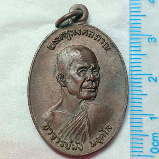 เหรียญพระครูมงคลภาณี(หลวงพ่อมัง) วัดเทพกุญชร จ.ลพบุรี ที่ระลึกสร้างอุโบสถ หลังยันต์ห้า เนื้อทองแดง ปี 2521
