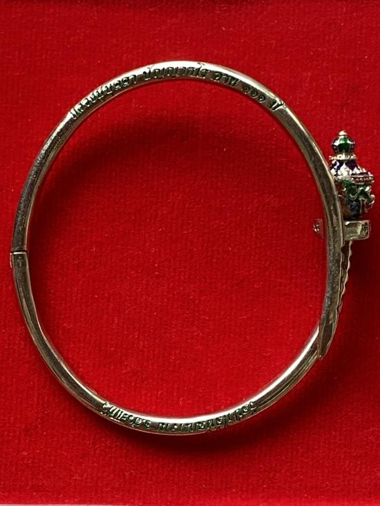 กำไลท้าวเวส เนื้อ ทองขาวขัดเงาลงยาสีแดง |