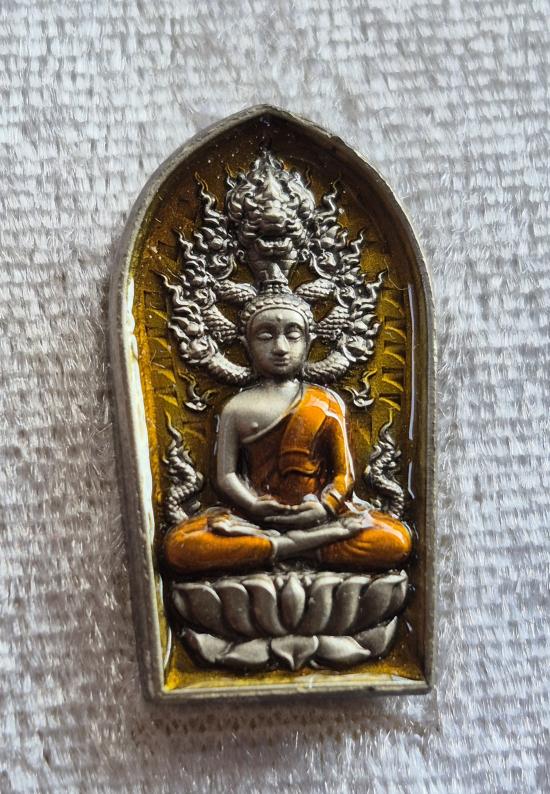 พระนาคปรก พระครูบาศักดิ์ จ.ลำปาง เนื้ออัลปาก้าซาติน ลงยาเหลือง