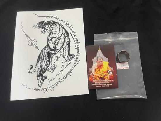 แหวนศรพระราม size 59 ตอกโค๊ตหมายเลข 813 พร้อมสติ้กเกอร์ พญาเสือ วัดพระธาตุหมื่นหิน |