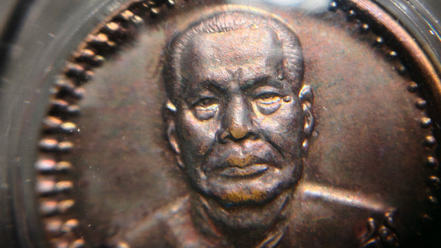 เหรียญครบรอบ 80 ปี หลวงปู่ก๋วน อคฺควโย วัดตะเคียนทองธาราม จังหวัดระยอง สร้างเมื่อปี พ.ศ. 2540