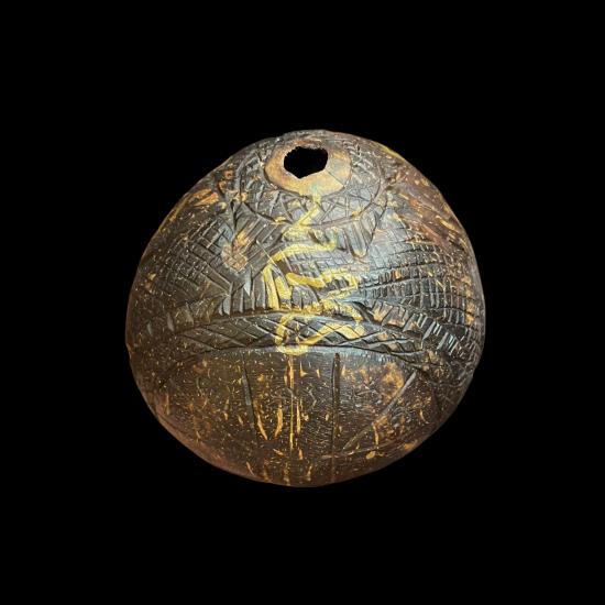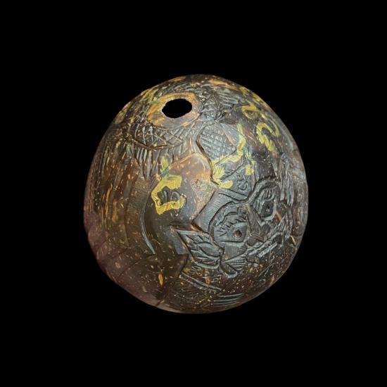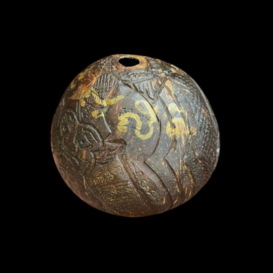 ราหูกะลาตาเดียวเเกะทั้งใบ ปี 47 หลวงปู่ทิม วัดพระขาว มีจารหมึกทอง และจารอักขระที่ผิวกะลา สวย งาน handmade หายากมาก น่าใช้ เข้มขลังมากครับ