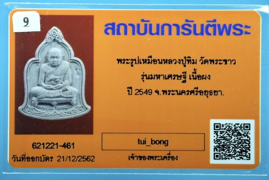 พระผงมหาเศรษฐี ปี 49 หลวงปู่ทิม วัดพระขาว เนื้อเกษร + บัตร G สวยครับ