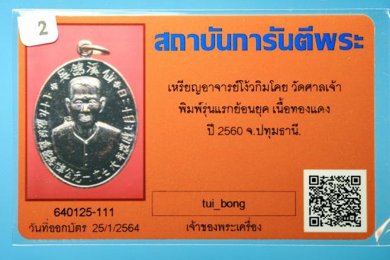 เหรียญอาจารย์โง้วกิมโคย ( อาแป๊ะ ) วัดศาลเจ้า จ.ปทุมธานี รุ่นแรก ปี 60 เนื้อทองแดง พระสวย เหรียญดีมีอนาคต + บัตร G บัตรรับรองสถาบันการันตีพระ แบบสมาร์ทการ์ด มี QR CODE