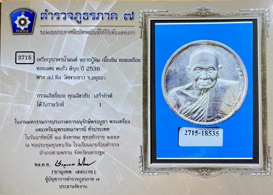 เหรียญบาตรน้ำมนต์ ปี 38 เนื้อเงิน หลวงปู่ทิม วัดพระขาว สร้างน้อย มากประสบการณ์ สวย น่าใช้ พร้อมใบประกาศนียบัตร หายากเเล้วครับ