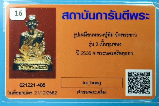 รูปหล่อ ปี 35 หลวงปู่ทิม วัดพระขาว เนื้อทองแดง ชุบทอง สร้างน้อย 1000 องค์ สวย พร้อมบัตร G ครับ