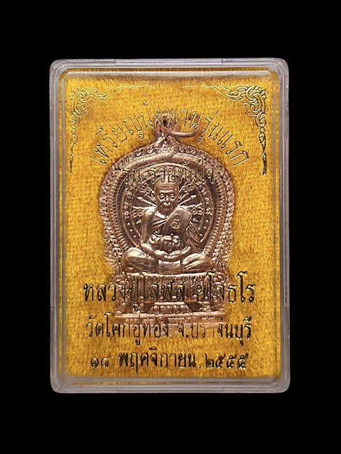 ***เหรียญนั่งพานรุ่นแรกหลังยันต์เกราะเพชร เนื้อทองแดง รุ่น รวยทันใจ (หมายเลข ๑๗๓๙) หลวงปู่โสฬส วัดโคกอู่ทอง จ.ปราจีนบุรี จำนวนการสร้าง 1,999 เหรียญ***
